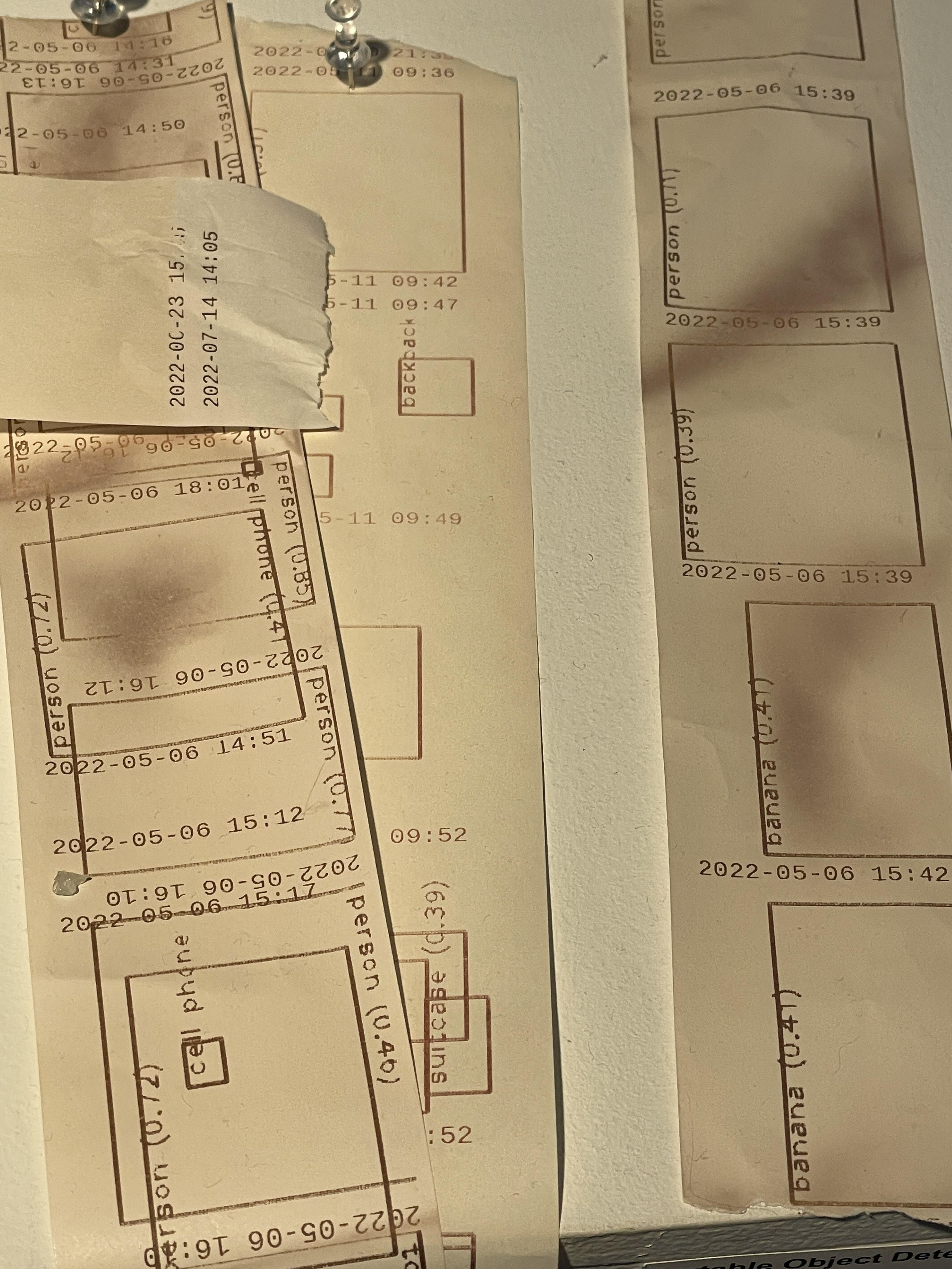 In addition to technical proficiency, the project envisions an interactive installation with an image gallery. The dynamic interaction between the portable camera and its audience, along with visual feedback on receipt paper, creates an immersive experience that challenges conventional photography notions. The project investigates potential interpretations resulting from AI object detection, pushing the limits of conventional image-making methods and offering a new outlook on the fundamental capacities of the medium.